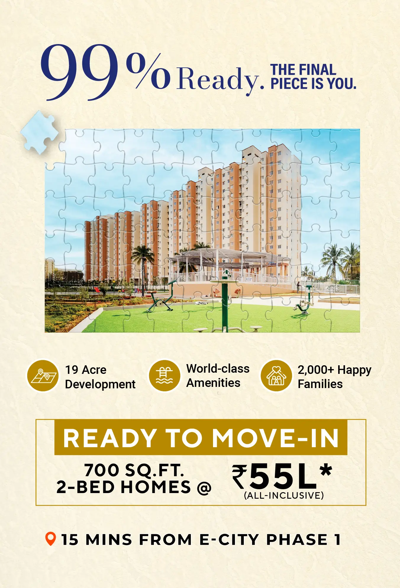 This breathtaking project is a stone’s throw away from Bengaluru’s biggest tech parks, so you spend your time making beautiful memories with your family.